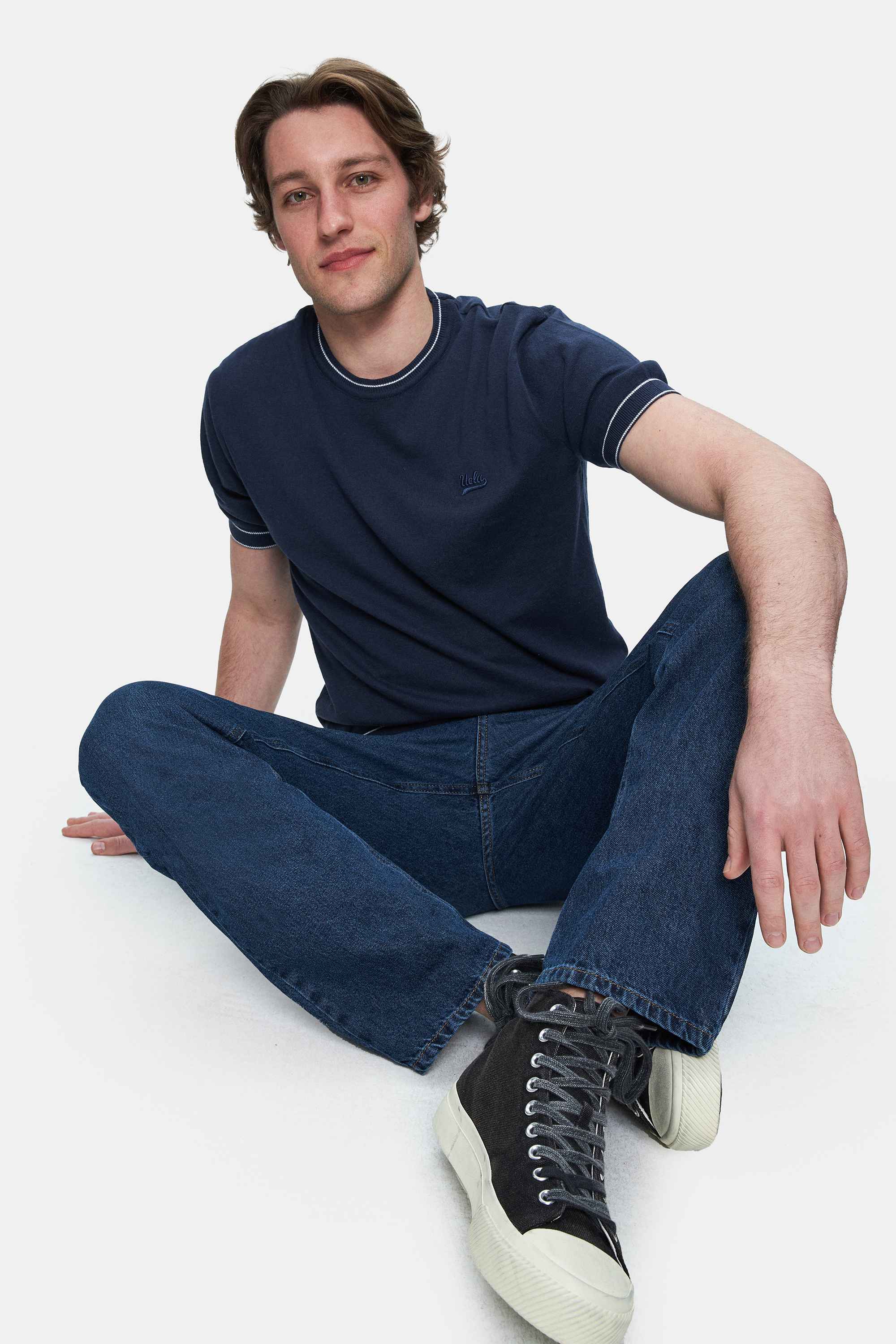 FARED Lacivert Bisiklet Yaka Triko Nakışlı Standard Fit Erkek Tshirt