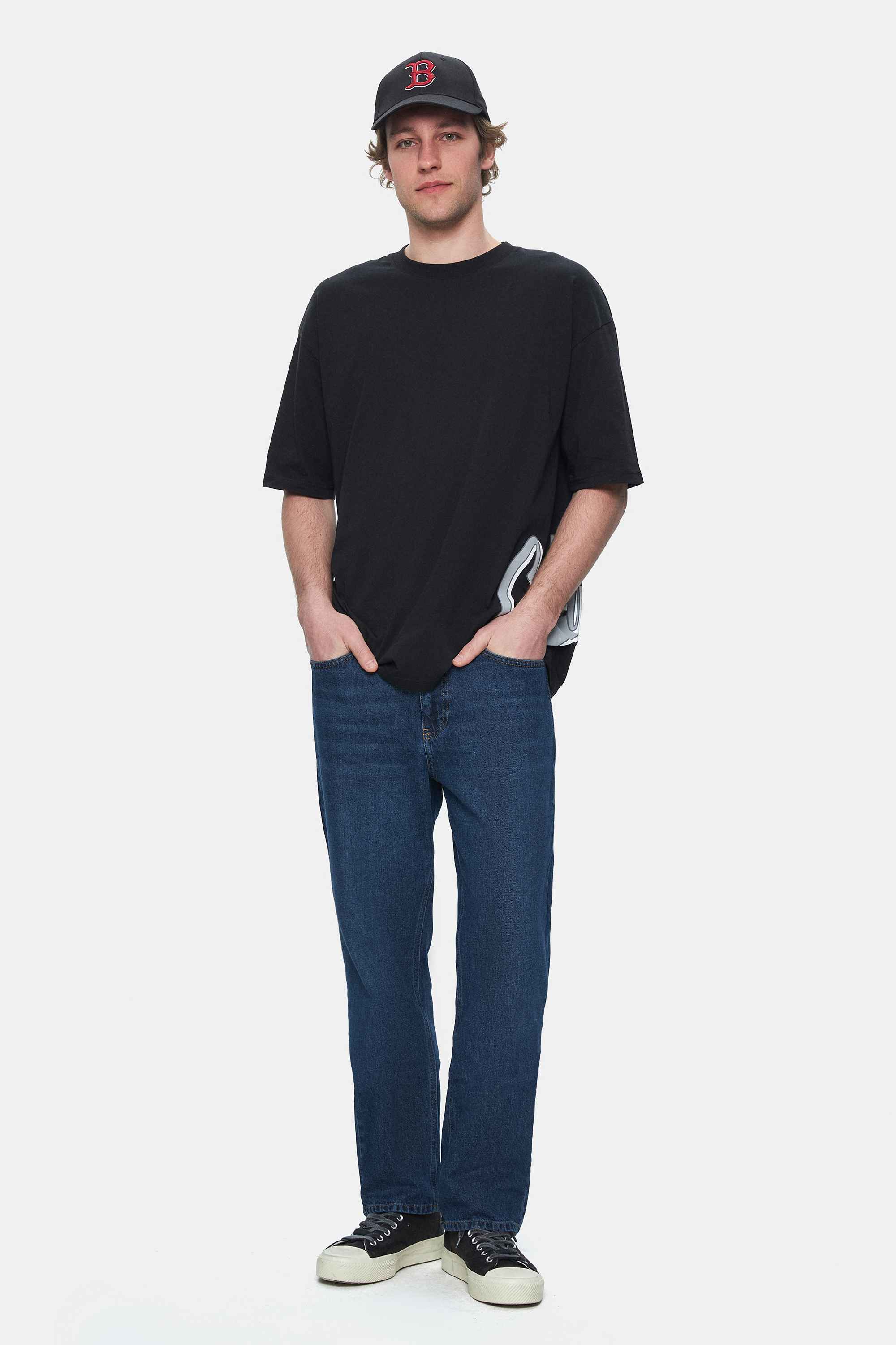 ROSCOE Siyah Bisiklet Yaka Baskılı Oversize Erkek Tshirt